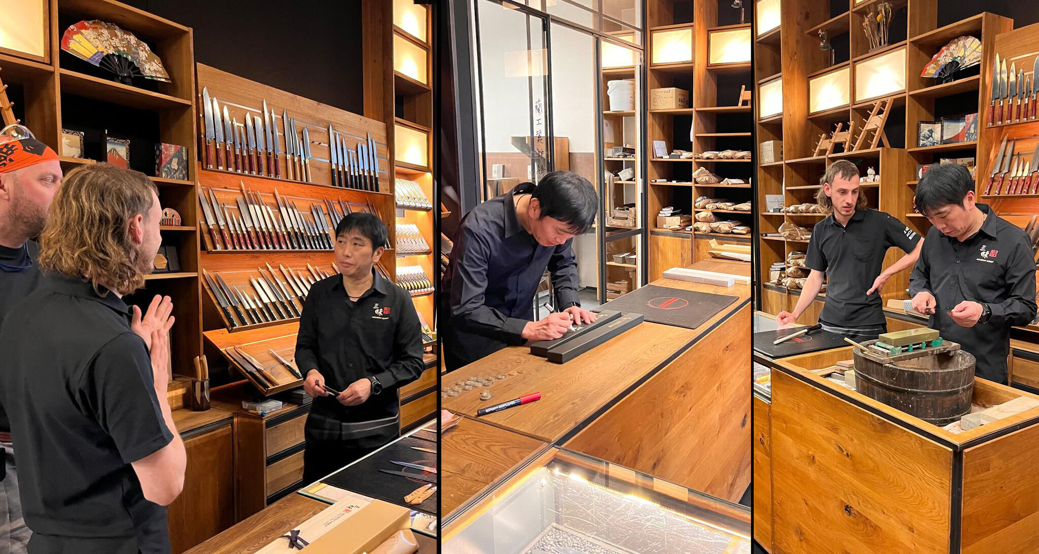 For now, Tomo-san wanted to give us a small preview of what will be possible. The knives cannot yet be fully customized to individual taste, but we are already able to showcase several petty knives in different finishes in our store.